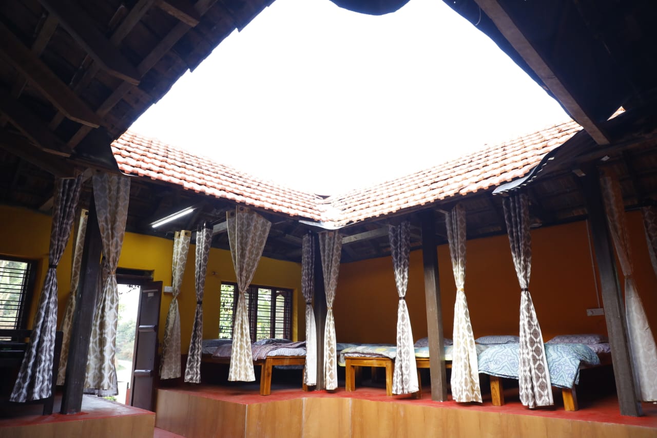 The ‘Thotti Mane’ is a compact home built 120 years ago. A place where people from all walks of life gathered, learned, played and held meaningful conversations. Inspired by the traditional Thotti Mane. The Place Byrapura ,A small Trekking paradise in Mudigere, Near to Sakleshpura . Which gives 360° panoramic view of Western Ghats, Charmadi hills , Ettina Bhuja and Shishila hills valley .